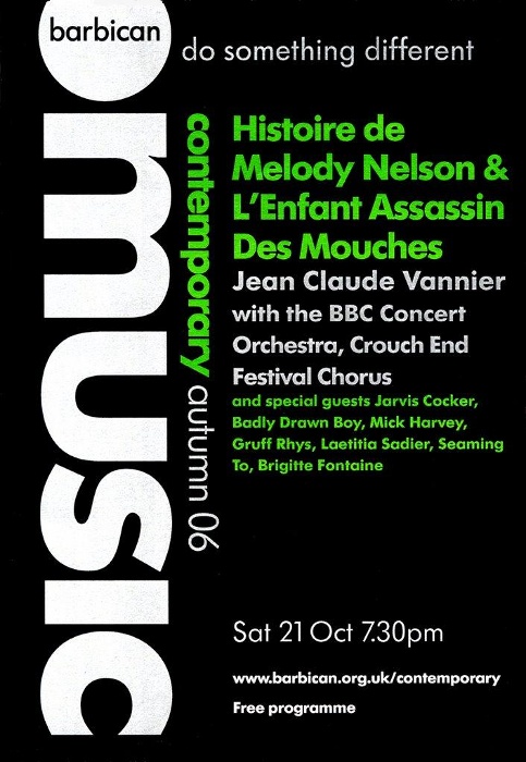 Jarvis Cocker (acoustic guitar, omnichord), Steve Mackey (bass, keyboards), Alasdair Molloy (glass harmonica). Plus only at Scott Walker’s Meltdown, Mark Webber (guitar), 'Scott' (drums) and The Swingle Singers.