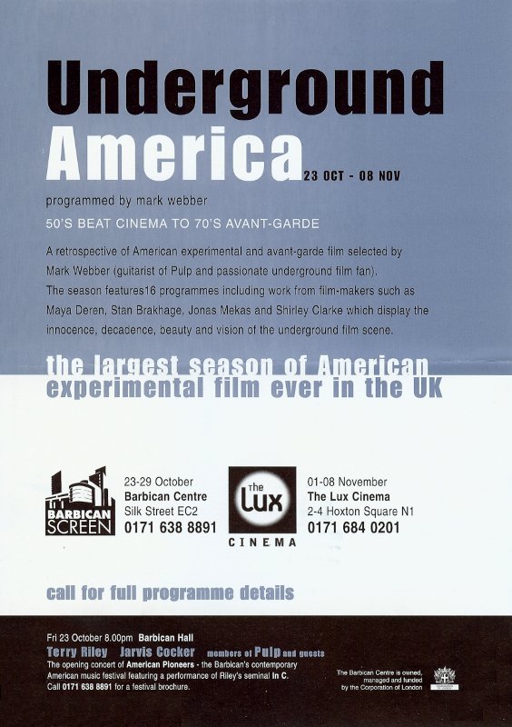 Mark Webber was involved with this season celebrating contemporary American composers at the Barbican, which included performances from La Monte Young, Terry Riley, John Cage, Philip Glass and Steve Reich. Jarvis, Steve Mackey and Mark Webber played with Terry Riley at the following performance: