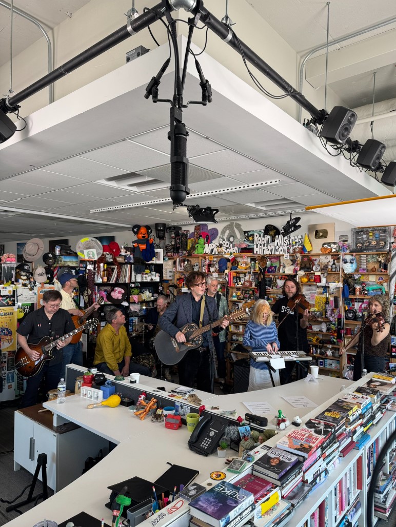Just before making the short walk from our makeshift green room (a converted office) to the Tiny Desk down the hall, the band members held hands and sang, “This will be the very best Tiny Desk.” It’s the kind of deadpan humor long found in the band’s music, but also in their performance, as Cocker crooned, cooed and danced his way through four tracks.