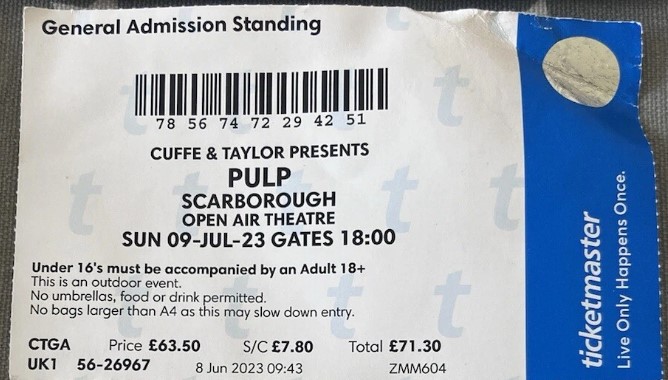 The 530th concert by Pulp. As a consequence of heavy rain delaying the start time by around 10 minutes, the band remained on stage after Sunrise and went directly into Like A Friend to ensure no songs were cut and the concert finished on time.
