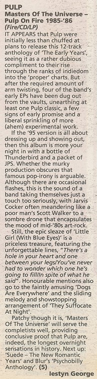 Patchy though it is, 'Masters Of The Universe' will serve the completists well, providing conclusive proof that Pulp are, indeed, the longest overnight sensations in history. Next up: 'Suede - The New Romantic Years' and Blur's 'Psychobilly Anthology'. (5)