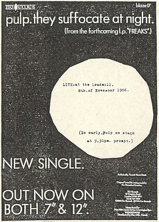 Pulp have been around since, it seems, almost the beginning of time - every few months putting out another exquisite piece of vinyl, every few months being ignored by the record-buying public at large. Last year their "Little Girl (With Blue Eyes)" and "Dogs Are Everywhere" singles gained a bit of ground. Now with a new single, "They Suffocate At Night", and LP "Freaks" (both on Fire Records) we have the chance to see whether Pulp will at last gain the recognition they deserve. We met Jarvis Cocker at his typically bizarre flat situated between a boxing club and a Boys Brigade hall (!), to talk about "Freaks" :