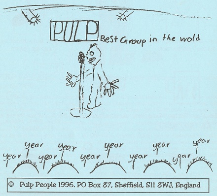 As you all know, things are pretty quiet on the Pulp front. So, to reward your patience, we hope our gift of Volume 2 of the legendary Pulp scrapbook will help make Christmas with the family just that little bit less, shall we say, stressful. The initial plan was to take it up to 1994, and His n Hers; trouble was, that resulted in 88 pages which, although graphically thrilling, would have cost about three grand to send out. So, Mark suggested we resort to plan B, which involved slicing the weighty tome in half, and just covering the period from O.U. to Intro. So, that's what you've got. Still pretty good, though, eh? Due to the large proportion of my life that compiling the scrapbook has taken up, this newsletter will be a relatively short one. I've been asked to inform you all that Volume 1 was going to be the only free one - the intention was to charge for any subsequent efforts. But no, we're far too nice to do that, so here it is, a gift from Pulp, to you. It'll cost you a tenner for Volume 3 though, ha, ha! (Just my little joke.)