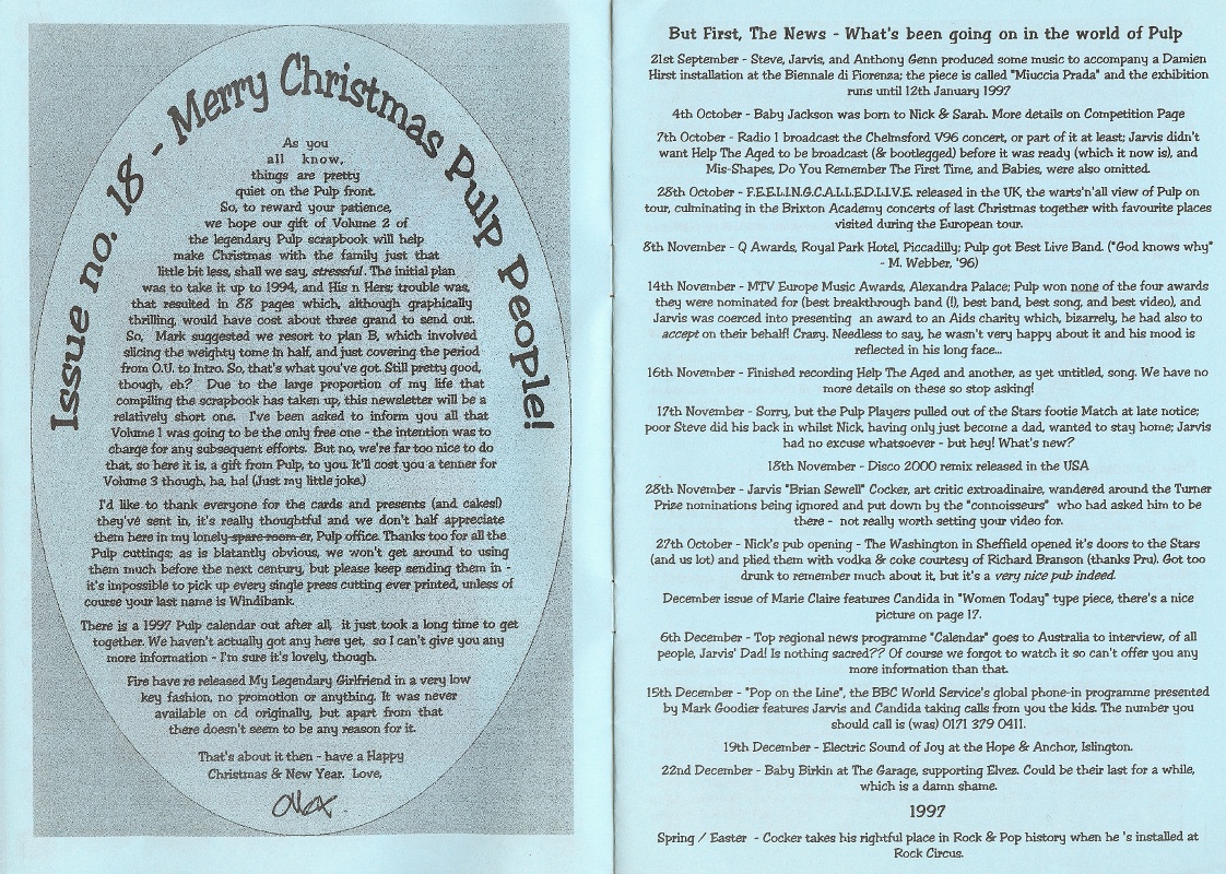 Pulp People Newsletter 18 written by Alex Deck. Christmas 1996.