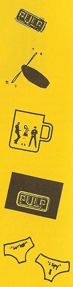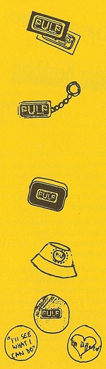 L: Set of two Pulp stickers, one white, one black. £1/$1.5/8FF.