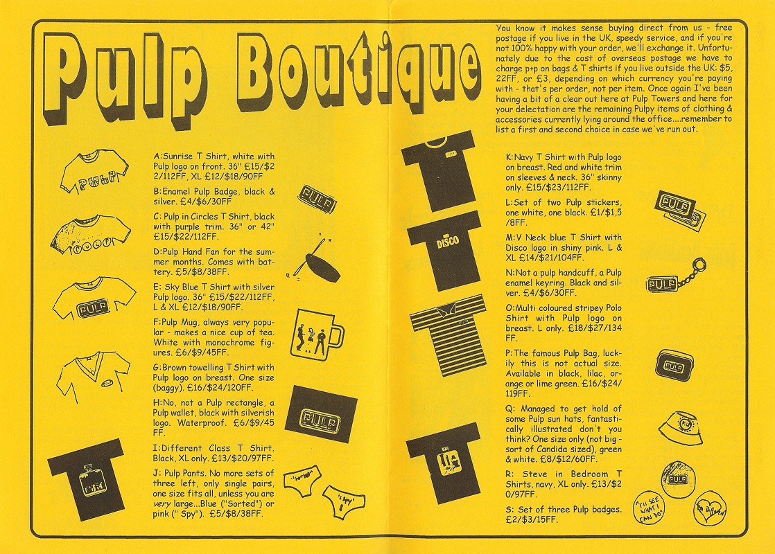 Good, eh? First ten out of the bag may well even win a signed photo of Pulp, so if that's not worth the price of a stamp, I don't know what is.