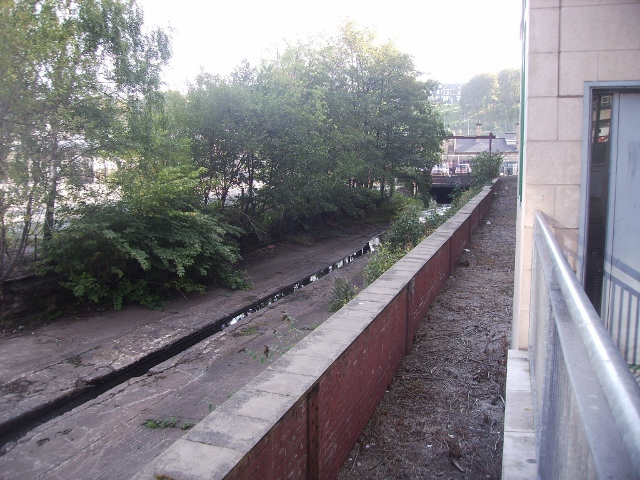 a river runs though a concrete channel
